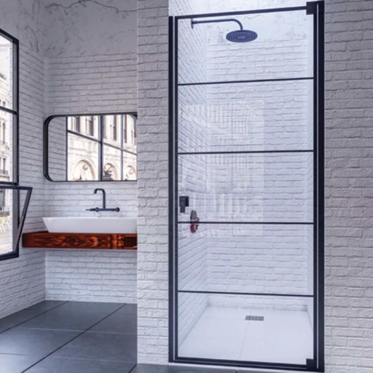 Frontal de ducha con una puerta abatible