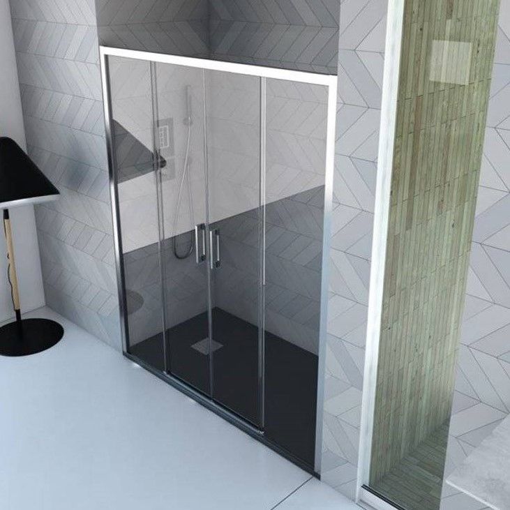 Frontal de ducha con dos hojas fijas y dos puertas correderas de apertura central