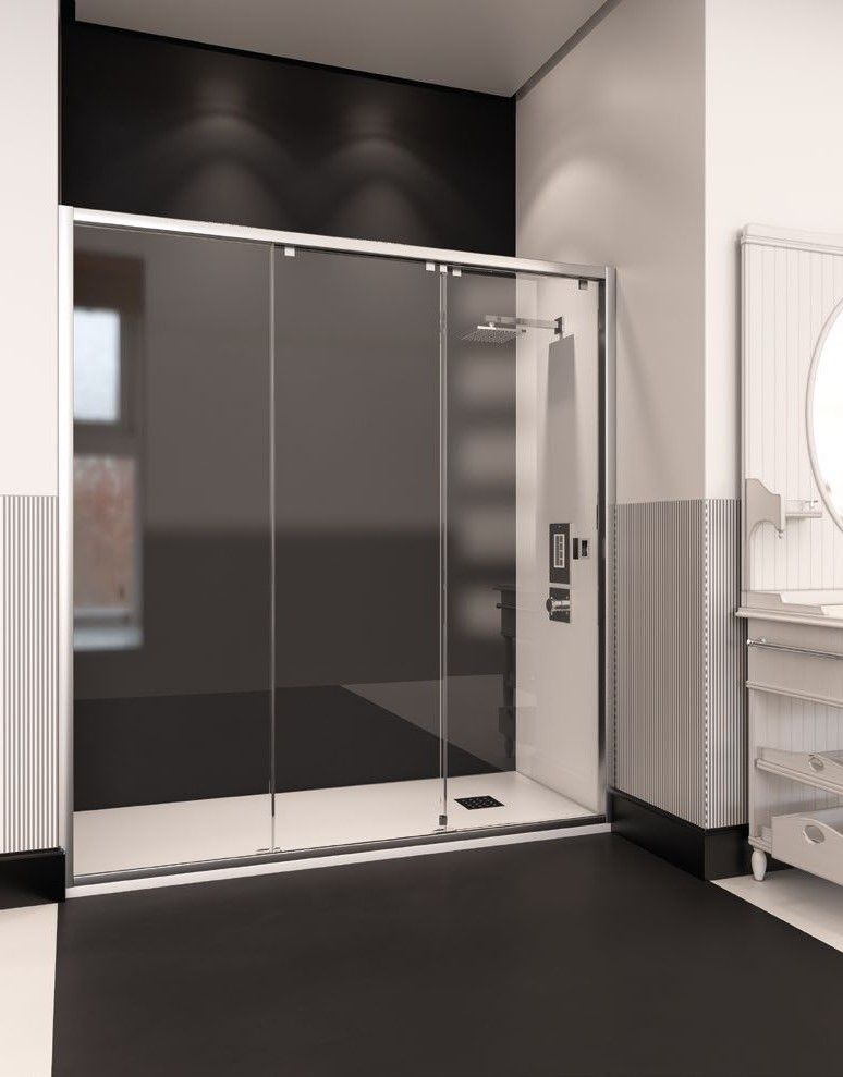 Frontal de ducha con una hoja fija y dos puertas correderas