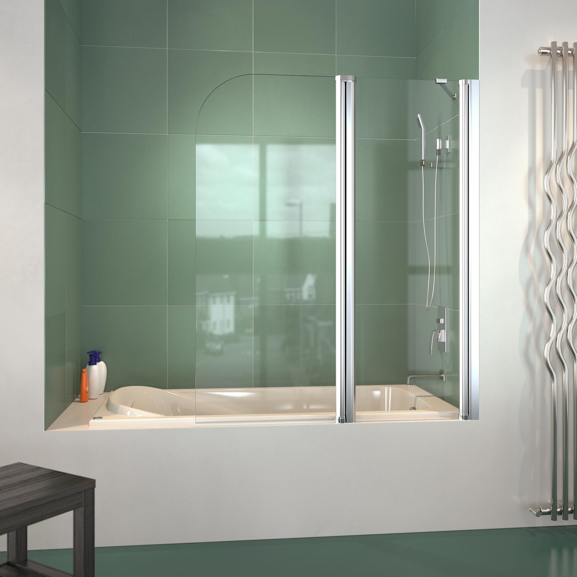 Frontal de bañera con una hoja fija y una hoja abatible.
