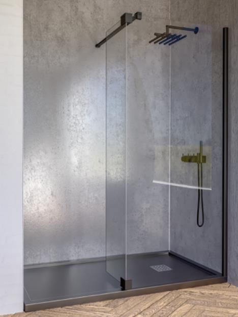 Frontal de ducha con una hoja fija y una hoja abatible al interior
