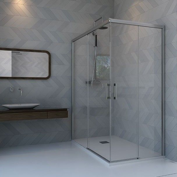 Angular de ducha con dos hojas fijas y dos puertas correderas